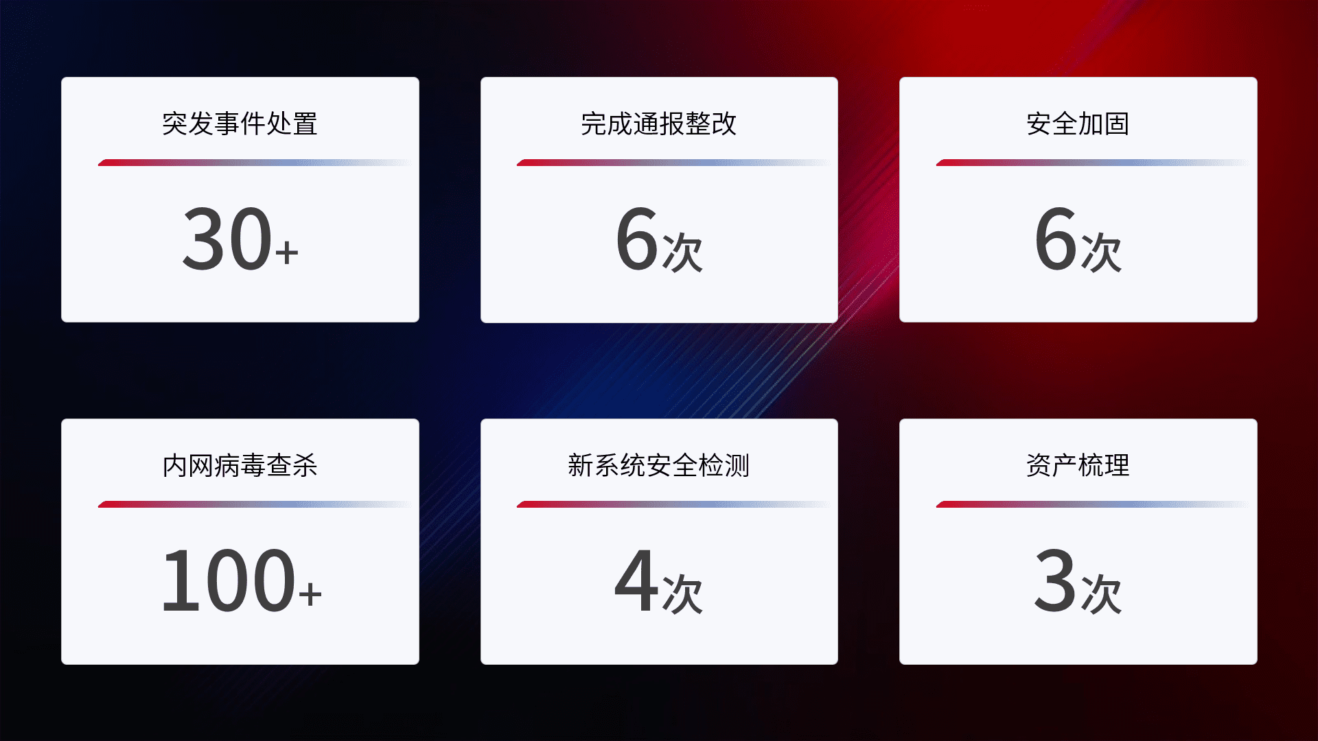 网络安全加固与风险管理:通过技术加固手段,,,如加强区域隔离,,缩减攻击内网横向移动的范围;优化现有网络安全管理制度,,,,降低网络威胁暴露面,,,,减少被黑客攻击的可能性。。。